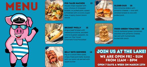 Pig Tales is located in Safe Harbor Aqualand Marina & serves as the premier BBQ restaurant on Lake Lanier.